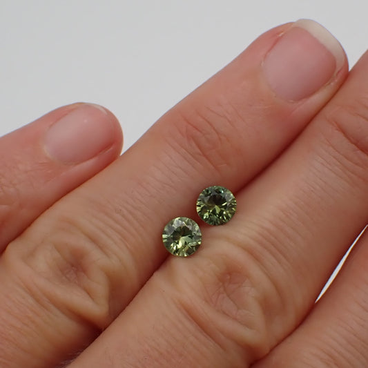 Australian Green Sapphire Pair - Round Cut 1.30ct