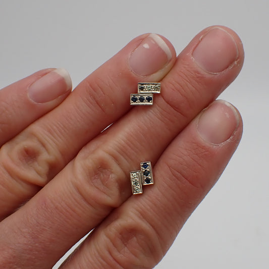 Australian Sapphire Earrings - Grain Set Studs - White Gold