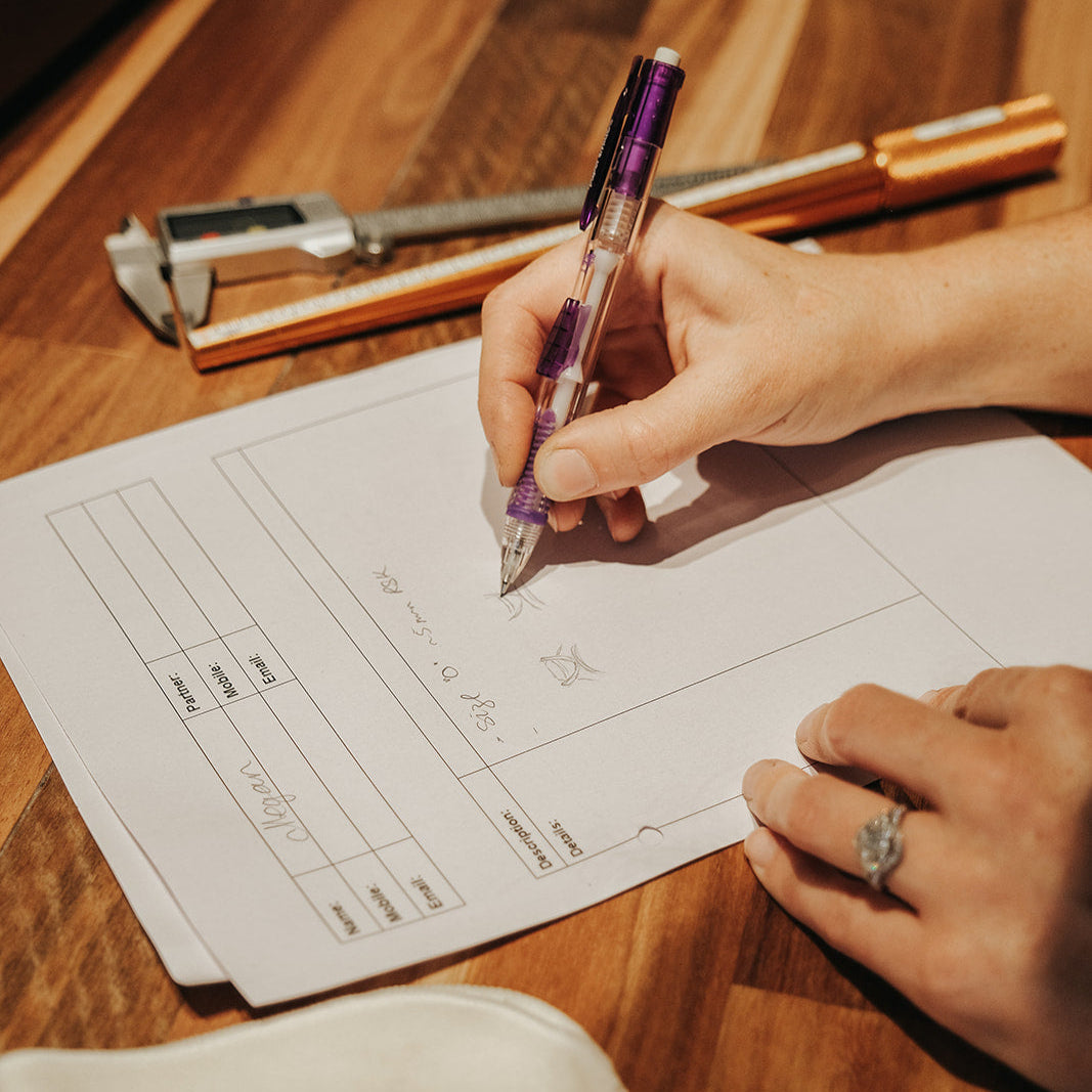 When you reach out via email or phone we will discuss your jewellery ideas with you, gathering the basics of your project to see if we are a good fit for each other.